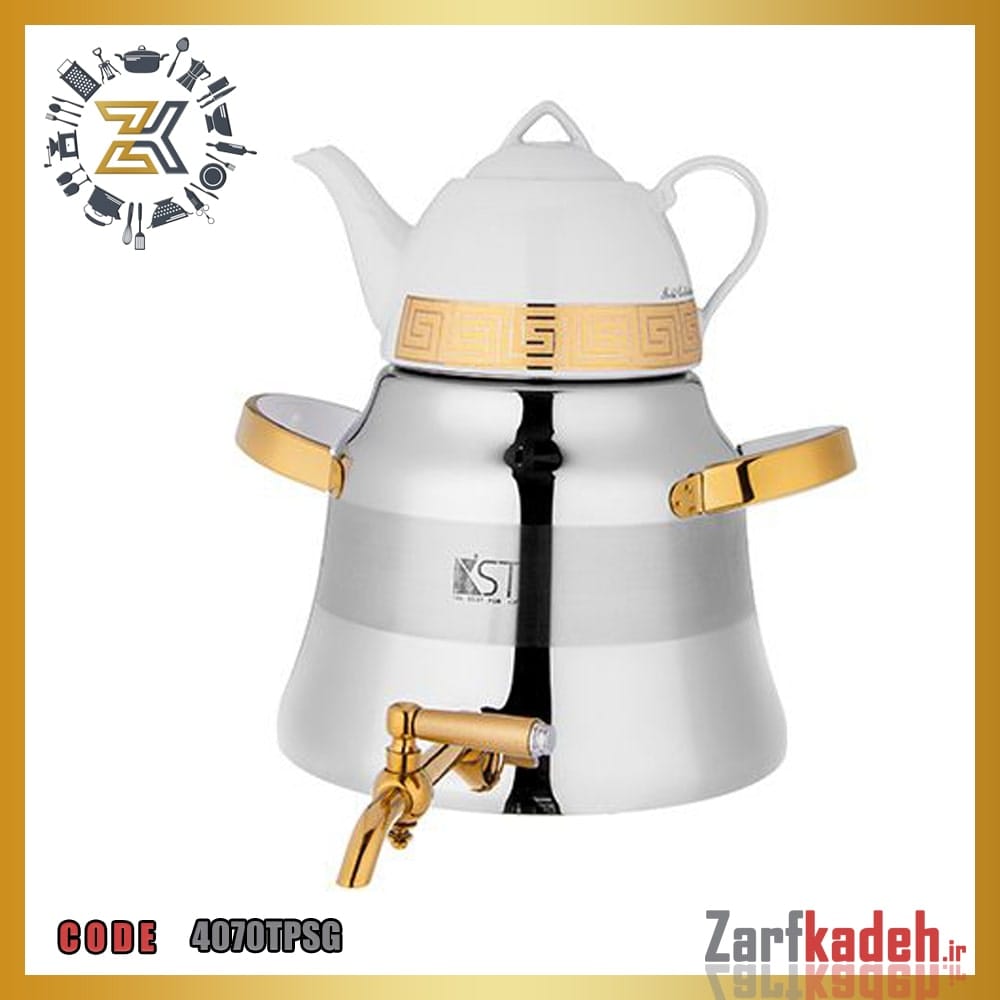 کتری با دوقوری شیردار دسته طلایی
